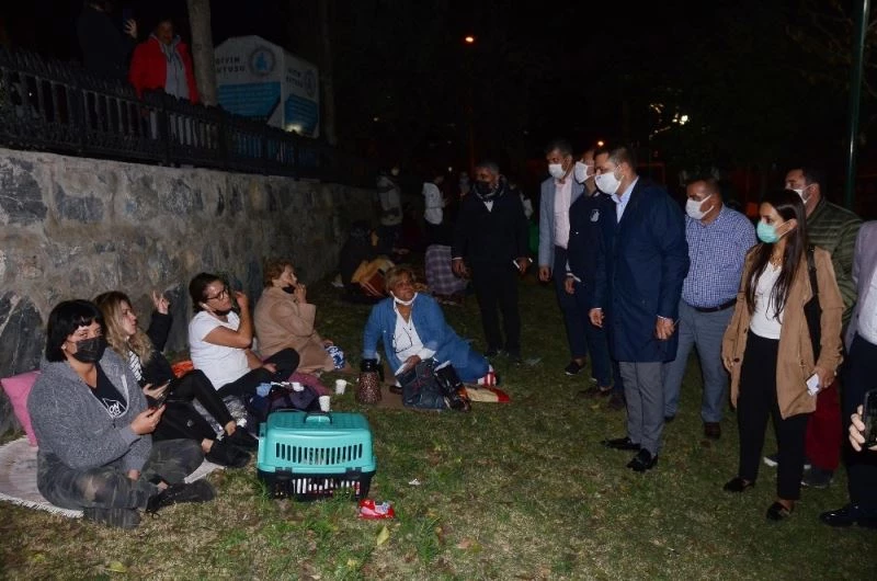 Kuşadası’nda başkanlar geceyi parkta geçiren vatandaşları ziyaret etti