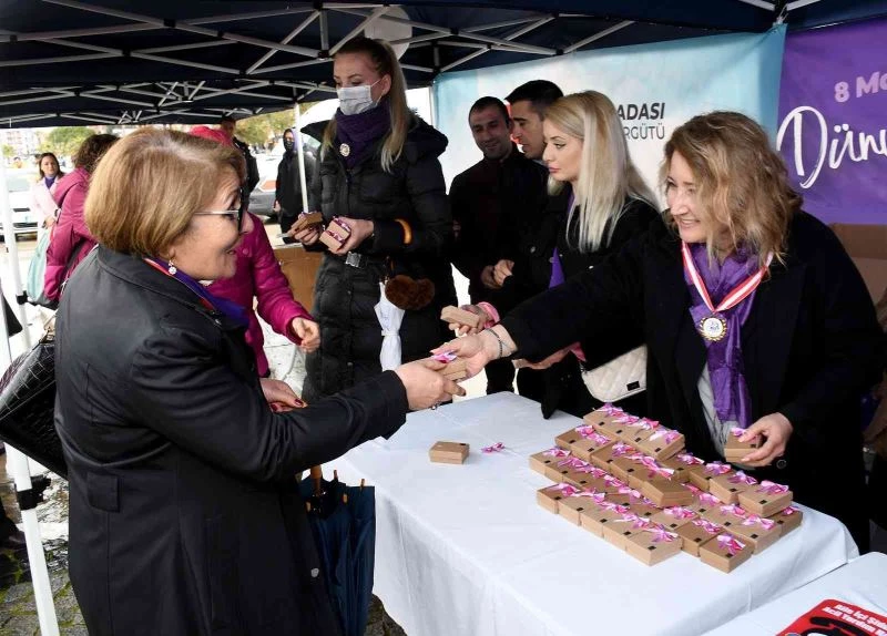 8 Mart Dünya Emekçi Kadınlar Günü, Kuşadası’nda düzenlenen çeşitli etkinliklerle kutlandı. Kuşadası Belediyesi ve Kuşadası Kent Konseyi’nin katkılarıyla Kuşadası Kadın Platformu tarafından düzenlenen etkinliğe kadınlar ellerinde taşıdıkları mor balonlarla katıldı.