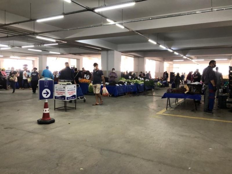 Tüm dünyayı etkisi altına alan korona virüs salgınına karşı aldığı önlemlerle dikkat çeken Kuşadası Belediyesi, yaşama geçirilen normalleşme adımları kapsamında yeniden açılan kapalı pazar yerlerinde tedbiri elden bırakmıyor.