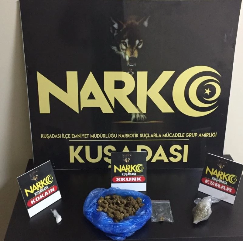Edinilen bilgiye göre, Kuşadası Emniyet Müdürlüğü Narkoik Grup Amirliğine bağlı ekipler, Kadınlar Denizi Mahallesi’nde durumundan şüphelendikleri iki kişiyi durdurdu. Yapılan sorgulamalarında şüphelilerin isimlerinin Ö.A. ve M.K. olduğunu tespit eden narkotik ekipleri, şüphelilere yönelik yaptıkları üst aramasında Ö.A.’nın üzerinde bir miktar kokain cinsi uyuşturucu madde ele geçirdi. Ayrıca Ö.A. isimli şüphelinin Kadınlar Denizi Mahallesi’nde bulunan bir apartmanın kömürlüğünde yapılan araştırmada ise 41.58 gram skunk esrar uyusturucu madde ve 14 gram esrar yakaladı. Ö.A. ve M.K. isimli şüpheliler gözaltına alınarak, sorgulanmak üzere Kuşadası Emniyet Müdürlüğü’ne götürüldü.