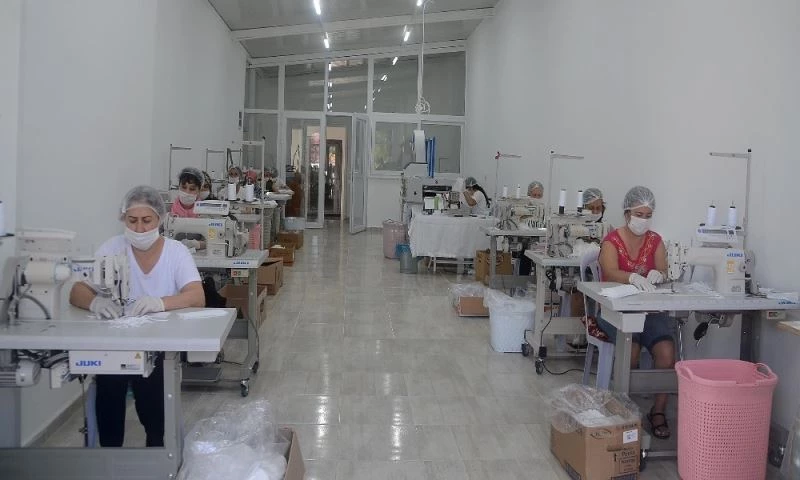 Ada Kadın Üretim ve İşletme Kooperatifi çatısı altında Türkmen, Soğucak, Kirazlı, Yaylaköy, Davutlar ve Güzelçamlı Mahallelerinde kurulan Emek Atölyeleri’nde gönüllü olarak çalışan 50 kadın, Kuşadası Belediyesi tarafından satın alınan dikiş, nakış, overlok ve maske üretim makineleri ile üretim kapasitelerini arttırdı. Pandemi sürecinin başından itibaren ürettikleri maskelerle Kuşadası’nın tüm ihtiyacını karşılayan gönüllü kadınlar Üç Katlı Otomatik Cerrahi Maske Makinesi’ne ilave olarak alınan 6 yeni dikiş, bir nakış ve bir overlok makinesi ile üretim kapasitesini 15 binden 20 bine çıkardı. Emek Atölyeleri’nde bu güne kadar 25 bini çocuklar için olmak üzere toplam 458 bin yüz maskesi üretildi. Medikal kumaştan dikilen maskeler, Sağlık İşleri Müdürlüğü ve Güvercin Masa ekiplerince kentin farklı noktalarında esnaf ve vatandaşlara dağıtıldı.