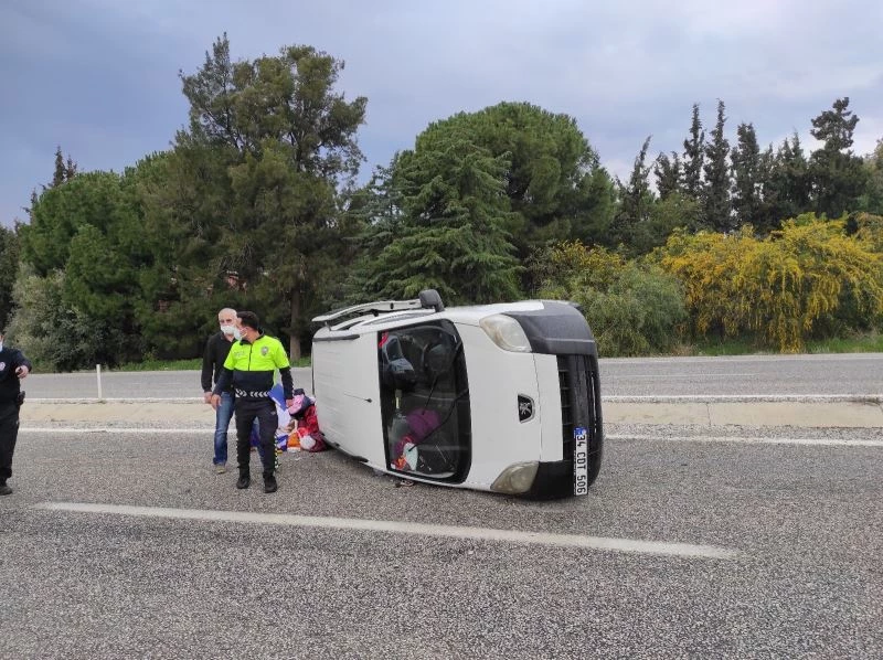Aydın’ın Kuşadası ilçesinde yağmur nedeniyle kayganlaşan yolda otomobil takla attı. Şans eseri kazada yaralanan olmadı.