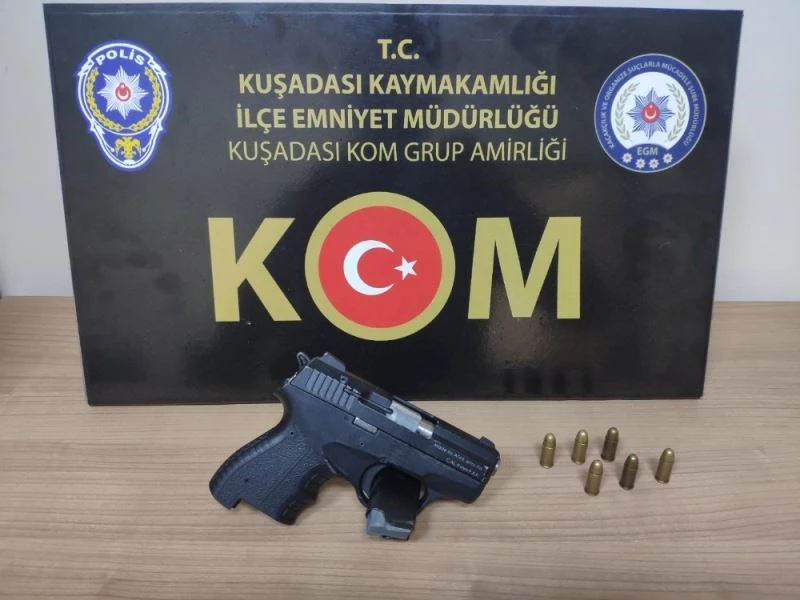 Türkmen Mahallesi’nde gerçekleştirilen operasyonda ise ihbar üzerine yakalanan D.K. isimli şüphelinin ikametinde yapılan aramada, 1 adet 9 mm çapında üzerinde marka model bulunmayan ruhsatsız tabanca, 7 adet 9mm fişek ve 1 adet 6,35mm fişek ele geçirildi. Bayraklıdede Mahalelesi’ndeki Kuştur uygulama noktasında bir araçta yapılan aramada da 1 adet 7.65 mm çapında üzerinde seri numarası bulunmayan tabanca ile bu tabancaya ait 6 adet 7.65 mm fişek ve 1 adet şarjör yakalandı. Olayla ilgili E.Y. isimli bir şüpheli gözaltına alındı. Her iki olayda gözaltına alınan D.K. ve E.Y. isimli şüpheliler, sorgulanmak üzere Kuşadası Emniyet Müdürlüğü’ne götürüldü.
