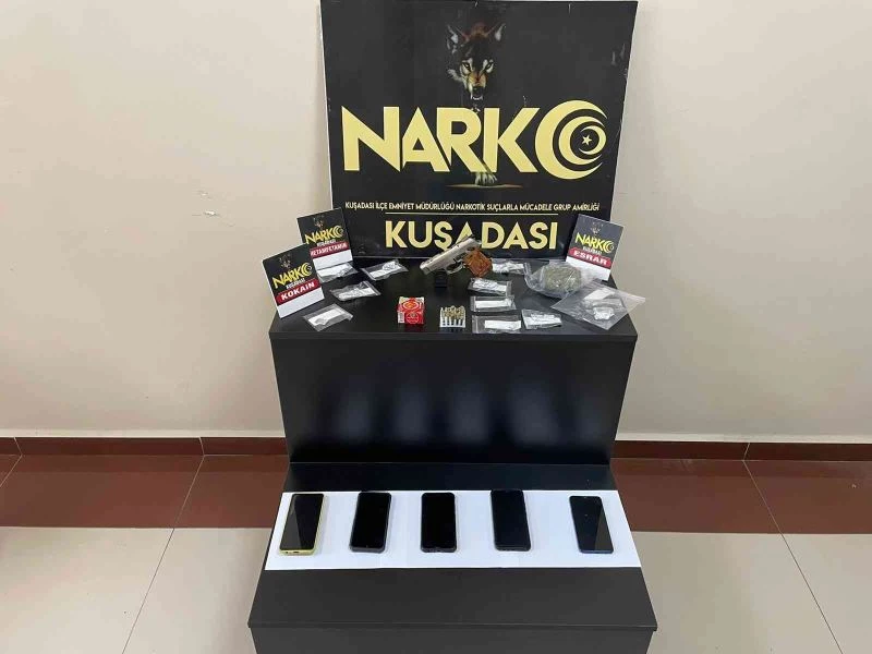 Aydın’ın Kuşadası ilçesinde narkotik ekipleri uyuşturucu sattıkları tespit edilen 3 farklı mahalledeki adreslere operasyon düzenlerken, yapılan aramalarda çok sayıda uyuşturucu ve silah ele geçirildi.