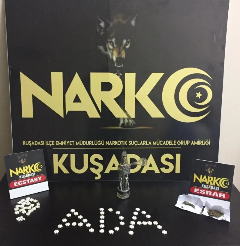 Kuşadası Emniyet Müdürlüğü Narkotik Suçlarla Mücadele Grup Amirliği ekiplerinin uyuşturucu ticareti yapan şahıs ve organizasyonlara yönelik çalışma başlattı. Yapılan çalışmalar neticesinde, Kadınlar Denizi Mahallesi’nde durumundan şüphelenilen S.E. isimli şahıs gözaltına alındı. Şüphelinin yapılan üst aramasında ise 60 Adet Ecstasy Uyusturucu hap ve 1.70 gram esrar maddesi ele geçirildi. S.E. isimli şahıs gözaltına alınarak, işlemler için Emniyete Müdürlüğüne götürüldü.