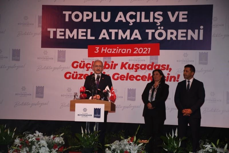 Aydın Büyükşehir Belediyesi ve Kuşadası Belediyesi işbirliği ile hayata geçirilen 16 projenin temel atma ve toplu açılış törenine katılan CHP Genel Başkanı Kemal Kılıçdaroğlu, kent estetiği ve doğasının korunmasına dikkat çekti.