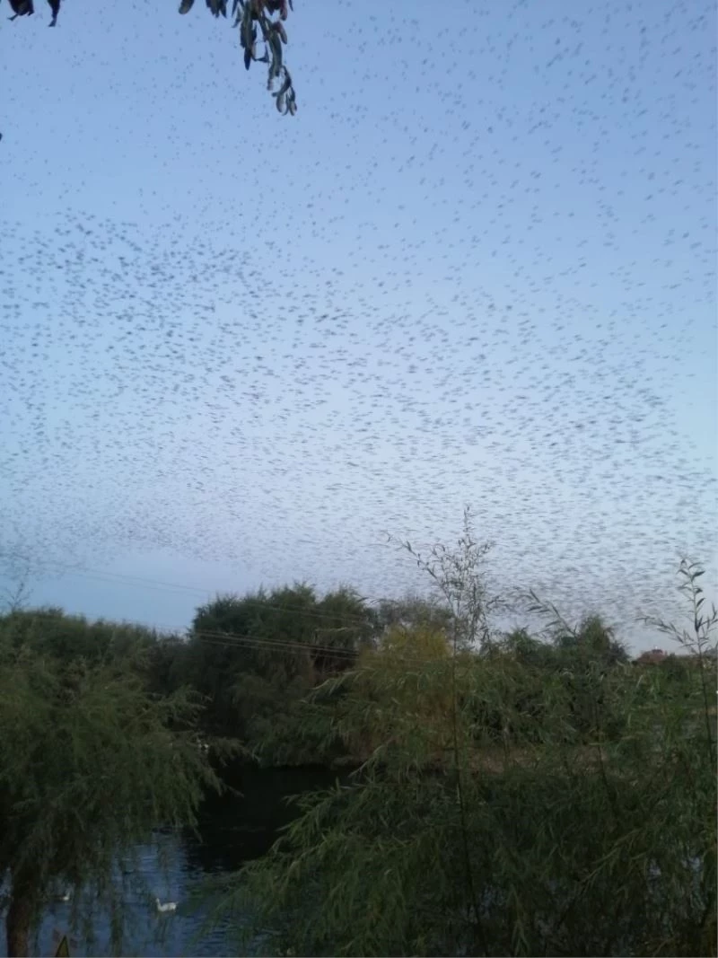 Nevşehir’in Avanos ilçesinde akşamlar saatlerinde binlerce sığırcık kuşunun aynı anda gökyüzünde uçarak dans etmesiyle ortaya muhteşem görüntüler çıktı.