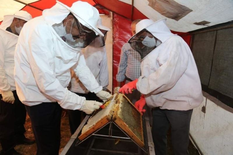 Bal üretimiyle ilgili Arıcılar Birliği Başkanı Halil Balta’dan bilgiler alan Vali Ali Çelik, bal hasadının hayırlı ve bereketli olması temennisinde bulundu.