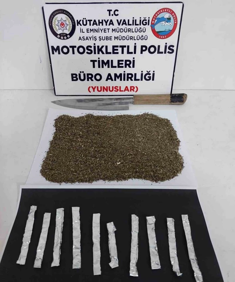Kütahya’da Motosikletli Polis Timlerince durdurulan araçta bulunan 2 kişiden birinin uyuşturucudan arama kaydı olduğu tespit edilirken, yapılan aramada,10 parça halinde paketlenmiş 8,22 gram metamfetamin, 30,61 gram bonzai ve 1 adet kesici alet ele geçirildi.