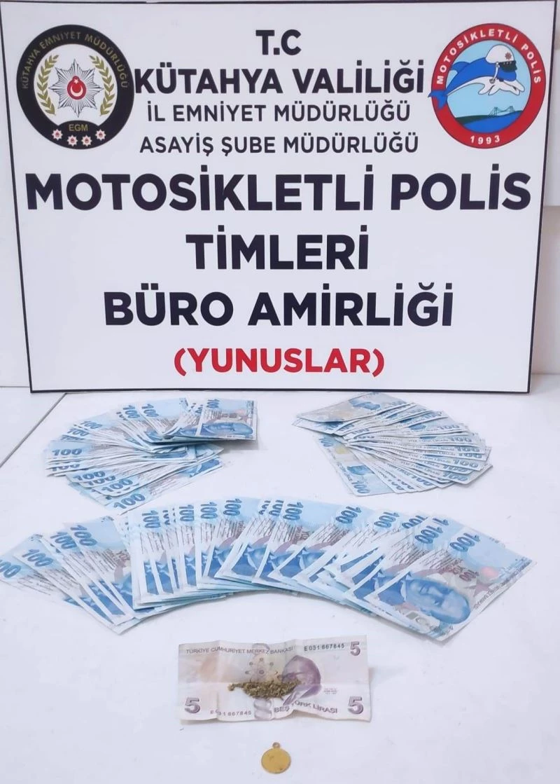 Kütahya’da Yunus Timlerince bir araçta yapılan aramada, 120 adet 100 TL’lik sahte banknot ve 1.05 gram esrar ele geçirildi.