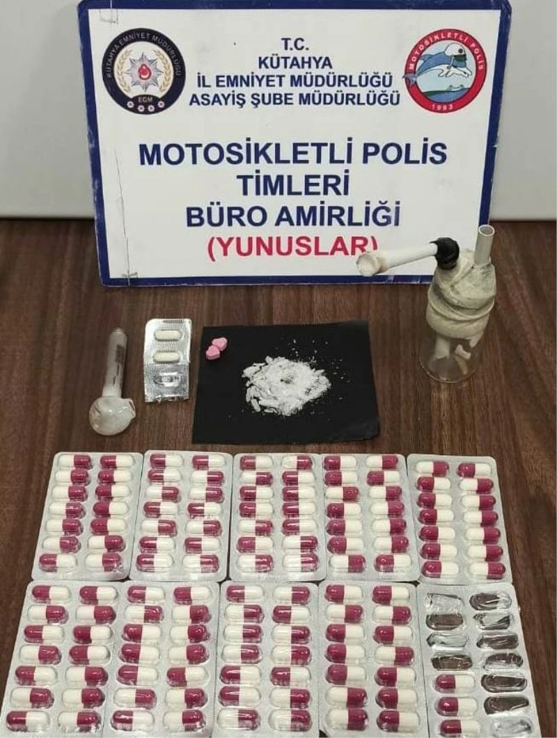 Kütahya Emniyet Müdürlüğü Asayiş Şubesine bağlı Yunus Timleri tarafından, Fuatpaşa Mahallesi’nde şüphe üzerine durdurulan içerisinde Ş.K. (42), M.K. (37) ve B.K. (23) isimli şahısların bulunduğu araçta ve şahısların yapılan üst aramasında, 2,80 gram metamfetamin, 131 adet sentetik ecza hap, 2 adet ekstazi, 1 adet bong ve 1 adet payp ele geçirildi.
