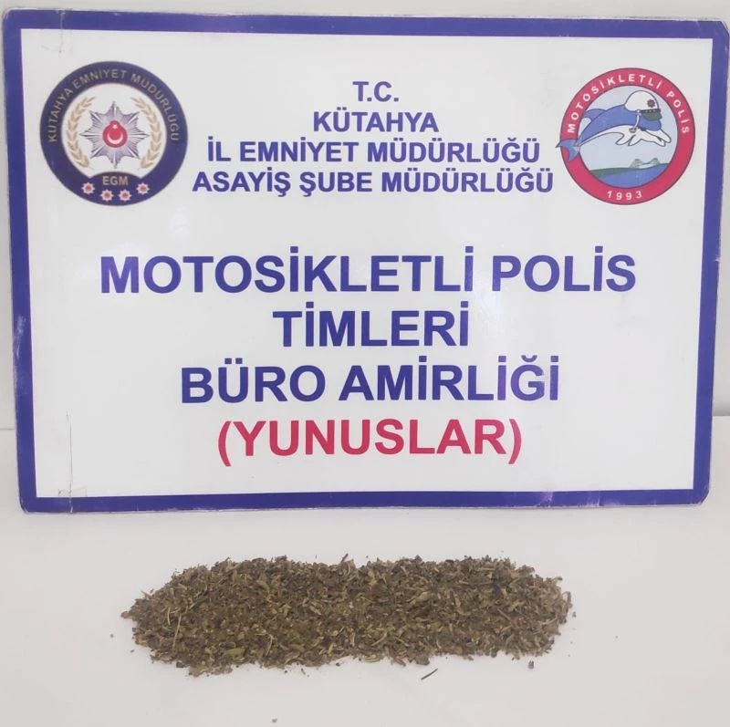 Kütahya’da Motosikletli Polis Timlerince durdurulan araçtaki şahsın üzerinde uyuşturucu madde ele geçirildi.