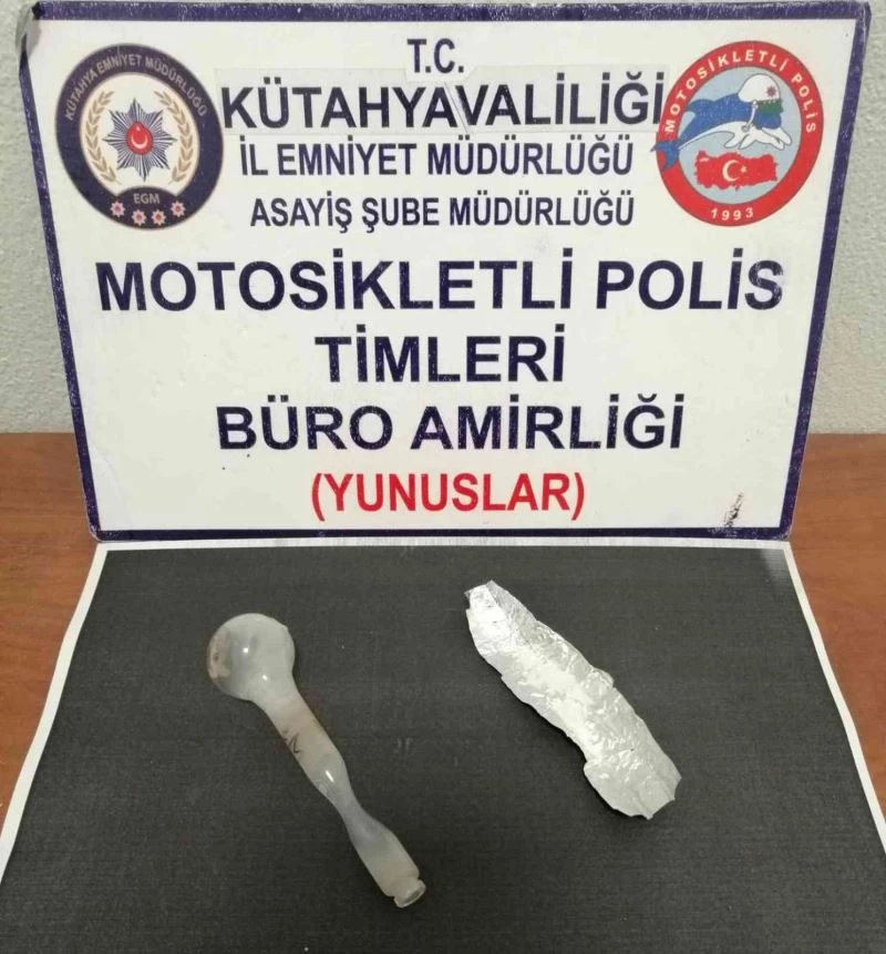 Kütahya’da Motosikletli Polis Timlerince bir şahsın yapılan üst aramasında 0,69 gram metamfetamin ele geçirildi.