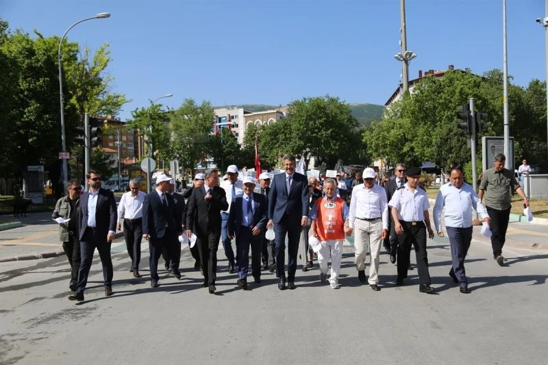 Vali Ali Çelik, Belediye Başkanı Prof. Dr. Alim Işık, protokol üyeleri, gençler ve çocuklar, Valilik önünden Belediyeye yürüdü. Yürüyüşe katılan çevreci çocuklar çevre temizliğine dikkat çeken pankartlar taşıyarak temiz çevre sloganları attılar.