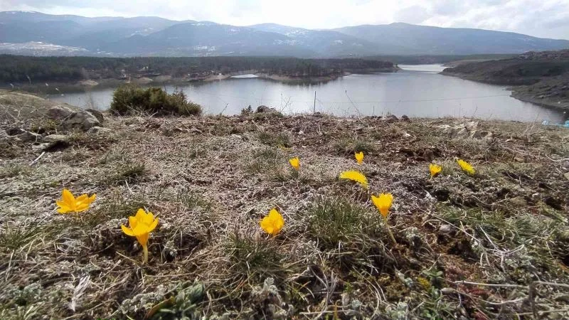 Kütahya’nın mesire alanı Enne Barajı Tabiat Parkı’nda baharın müjdecisi çiğdemler çiçek açtı.