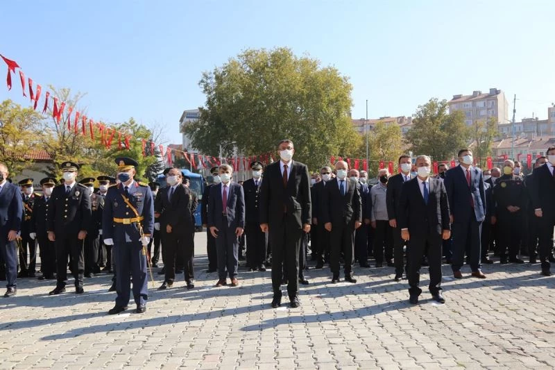 Tören; Vali Ali Çelik, Hava Er Eğitim Tugay ve Garnizon Komutanı Hava Piyade Tuğgeneral Necati Gündüz ile Belediye Başkanı Prof. Dr. Alim Işık’ın anıta çelenk sunmasının ardından saygı duruşunda bulunulması ve İstiklal Marşı’nın okunmasıyla sona erdi.