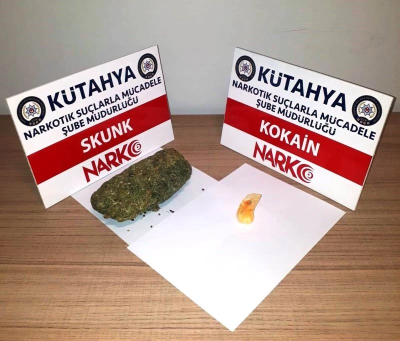 İl Emniyet Müdürlüğü Narkotik Suçlarla Mücadele Şube Müdürlüğü tarafından yapılan çalışmalar neticesinde E.E. ve P.G. isimli şahısların uyuşturucu sevkiyatı yapabileceği değerlendirildi. Şahısların içerisinde bulunduğu araç tespit edilerek Kütahya girişinde bulunan polis uygulama noktasında durduruldu. Aracın ve şahısların yapılan kontrollerinde, 5.32 gram kokain ve 210 gram skunk maddesi ele geçirildi.