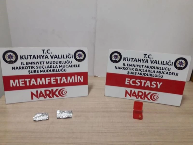 Kütahya’da Narkotik Suçlarla Mücadele Şube Müdürlüğü ekiplerince şüphe üzerine durdurulan araçta 1,34 gram metamfetamin ve 1 adet extacy ele geçirildi.