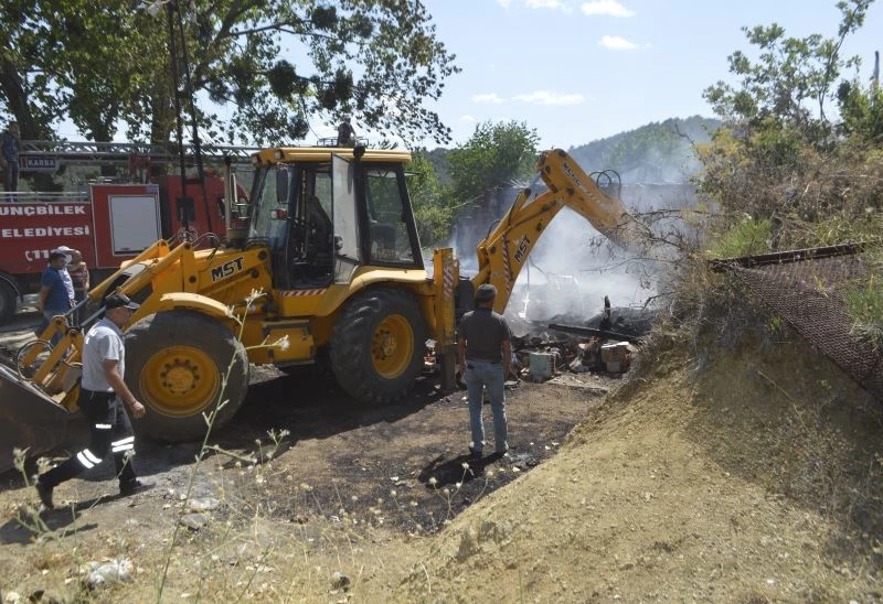 Yangının evin önünde yanan kuzineden çıktığı tahmin ediliyor.