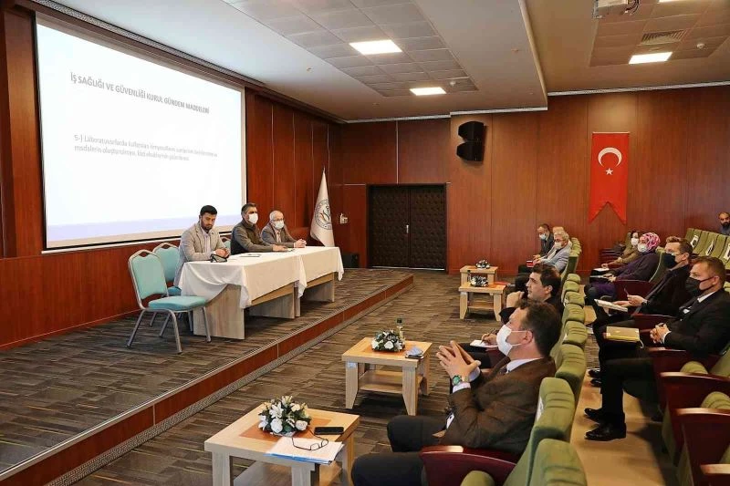 İş Sağlığı ve Güvenliği Kurul Toplantısı’na, KSBÜ Rektör Yardımcısı Prof. Dr. Mustafa Cem Algın başkanlığında gerçekleştirildi. Toplantıya Genel Sekreter Kutlu Önal, daire başkanları ve müdürler de katılım sağladı. Kurul toplantısı sonrasında açıklamalarda bulunan İş Sağlığı ve Güvenliği Koordinatörü Öğretim Görörevlisi Fatih Ulukaya, “KSBÜ olarak iş sağlığı ve güvenliği alanında her seferinde daha da etkin ve faydalı faaliyetler üzerinde çalışıyoruz. Gerçekleştirdiğimiz eğitimlerin iş kazalarının azalmasında ve meslek hastalıklarının önlenmesinde yararlı olması temenni ediyoruz” dedi.