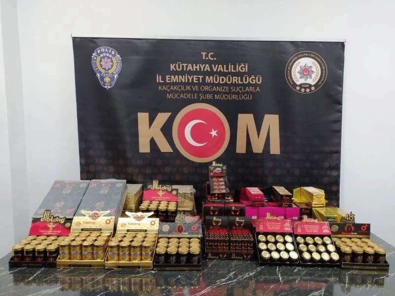 Kütahya Emniyet Müdürlüğü Kaçakçılık ve Organize Suçlarla Mücadele Şubesi ekipleri, kentteki bakkal, büfe tarzı iş yerlerine cinsel gücü arttırıcı gıda ürünü ve hap getirileceği bilgisi üzerine harekete geçti. Bahse konu araç Afyonkarahisar yolu polis uygulama noktasında durduruldu. Araçta yapılan aramada cinsel içerikli bin adet ürün ele geçirildi. Gözaltına alınan araç sürücüsü C.A. hakkında adli işlem başlatıldı.
