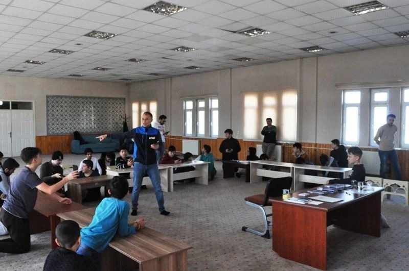 Anadolu Gençlik Derneği Erkek Öğrenci Yurdu’nda yapılan eğitimde, afetlerden önce alınması gereken tedbirler, afet anında yapılması gereken doğru davranış hareketleri ve afet sonrası için yapılması gereken planlamalar detaylı bir şekilde ele alınırken, afetlerden zarar almadan veya en az zararla kurtulabilmek için, bu anlamda alınacak tedbirlerin önemine vurgu yapıldı. Deprem anı çök-kapan-tutun hareketinin de tatbik edildiği eğitimin ardından AFAD Acil Mobil Uygulaması ve AFAD Gönüllüğü projesi tanıtıldı.