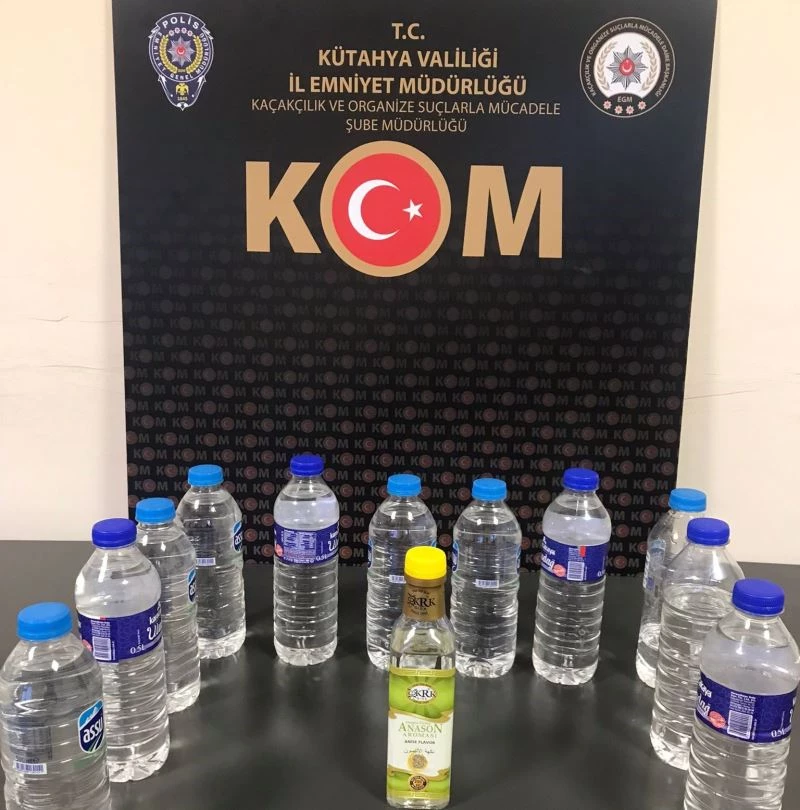 İl Emniyet Müdürlüğü Kaçakçılık ve Organize Suçlarla Mücadele Şube Müdürlüğünün yapmış olduğu çalışmalar sonucunda kaçak/sahte içki imal ve satışı yaptığı tespit edilen N. Ş. isimli şahsın Tavşanlıdaki ikametinde Tavşanlı İlçe Emniyet Müdürlüğü ekipleri ile birlikte yapılan aramada, 250 ml anason aroması, 500 ml’lik pet şişeler içerisinde, 9 adet tamamı dolu şişe içerisinde toplam 4,5 litre kaçak/sahte alkol, 1 adet şişe içerisinde 450 ml kaçak/sahte alkol ve 1 adet şişe içerisinde 100 ml kaçak/sahte alkol ele geçirildi.