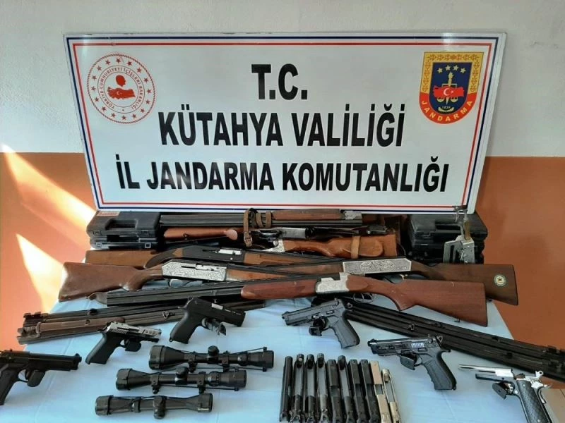 İl Jandarma Komutanlığı ve Tavşanlı İlçe Jandarma Komutanlığı tarafından yapılan çalışmalar neticesinde, İ. K. isimli şahsın, işletmekte olduğu av tüfeği tamirhanesinde, kurusıkı tabancaların namlularını değiştirdiği ve namlusu değiştirilmiş tabanca ile tabanca mermisi satarak silah ve mühimmat kaçakçılığı yaptığı bilgisi üzerine harekete geçen ekipler tarafından şahsın işyeri, ev ve eklentilerinde yapılan aramada, 6 adet kurusıkı tabanca, 5 adet tabanca şarjörü, 12 adet seri numaraları silinmiş tabanca üst kapak takımı, 5 adet ruhsatsız av tüfeği, 3 adet av tüfeği dürbünü, 6 adet av tüfeği namlusu, 5 adet av tüfeği dipçik ve tertibatı ile 1 adet kartuş baskı aparatı ele geçirildi.