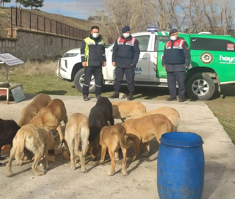 Kütahya İl Jandarma Komutanlığı Çevre Doğa ve Hayvanları Koruma Timi ve Kütahya Belediyesi ekipleri tarafından soğuk hava şartları nedeniyle yeterli beslenemeyen sokak hayvanlarına yem bırakıldı.