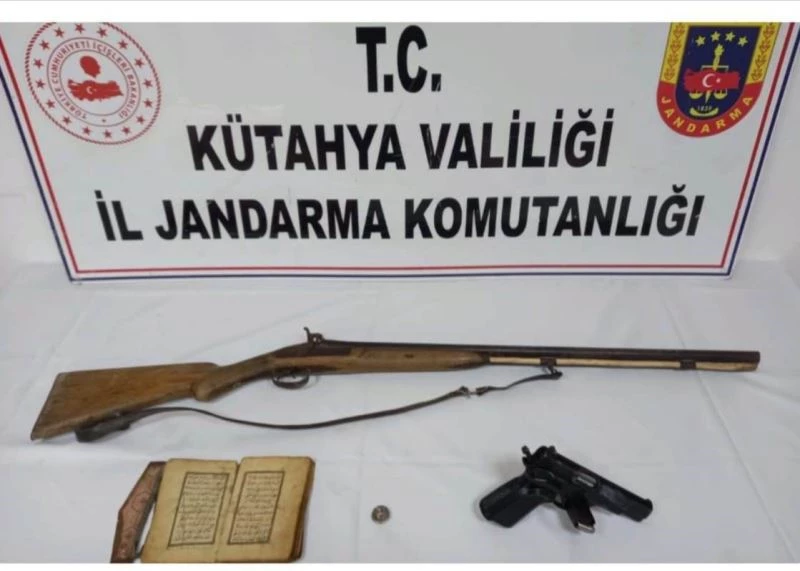 Kütahya Merkez ve Aslanapa ilçelerinde jandarmanın yaptığı operasyonlarda 1 adet el yazması Kuran-ı Kerim, Osmanlı döneminden kalma olduğu değerlendirilen 1 adet tarihi av tüfeği ve 1 adet gümüş sikke ele geçirildi. 5 şüpheli gözaltına alındı.