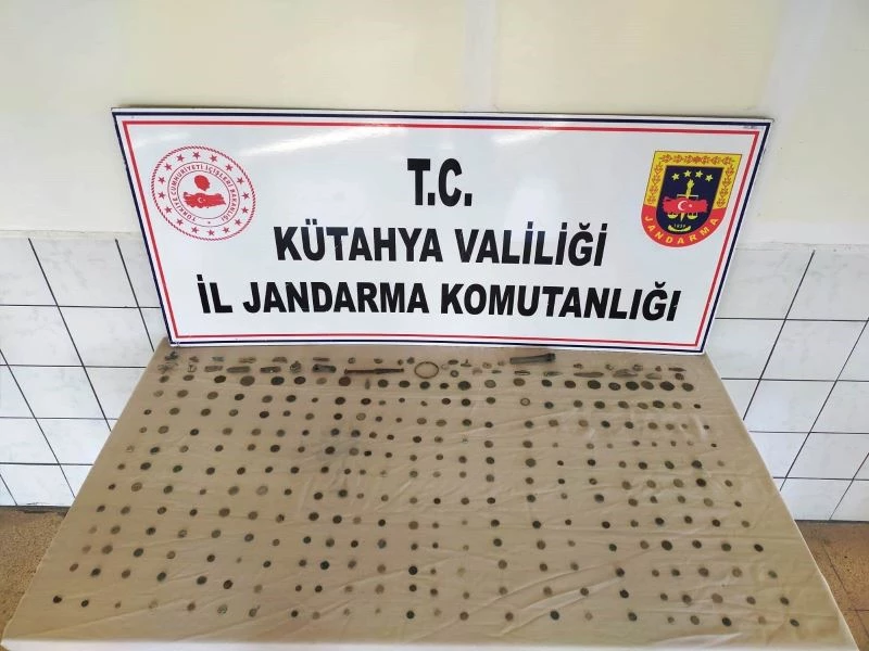 Kütahya’nın Dumlupınar ilçesinde jandarma ekipleri tarafından düzenlenen operasyonda Bizans dönemine ait olduğu değerlendirilen 274 adet tarihi sikke ve 41 adet değişik ebatlarda obje ele geçirildi.