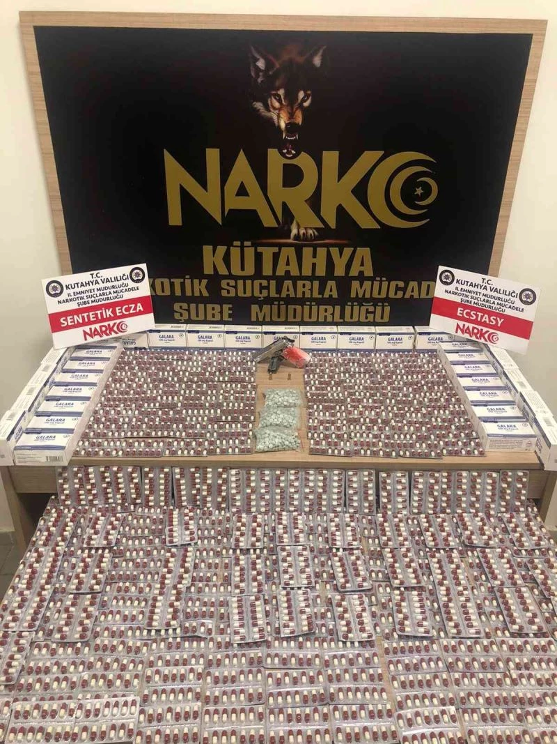 Kütahya’da polis tarafından düzenlenen operasyonda 5 bin 526 adet sentetik ecza, 826 adet ecstasy hap, 1 adet ruhsatsız tabanca ve 2 adet tabanca fişeği ele geçirildi. 6 şüpheli gözaltına alındı.