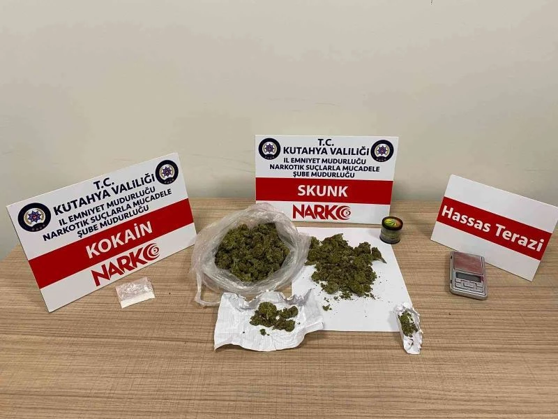 Kütahya İl Emniyet Müdürlüğü Narkotik Suçlarla Mücadele Şubesi ekiplerince yapılan çalışma neticesinde H. M. A. isimli şahıs 5.91 gram skunk maddesi ile birlikte yakalandı.