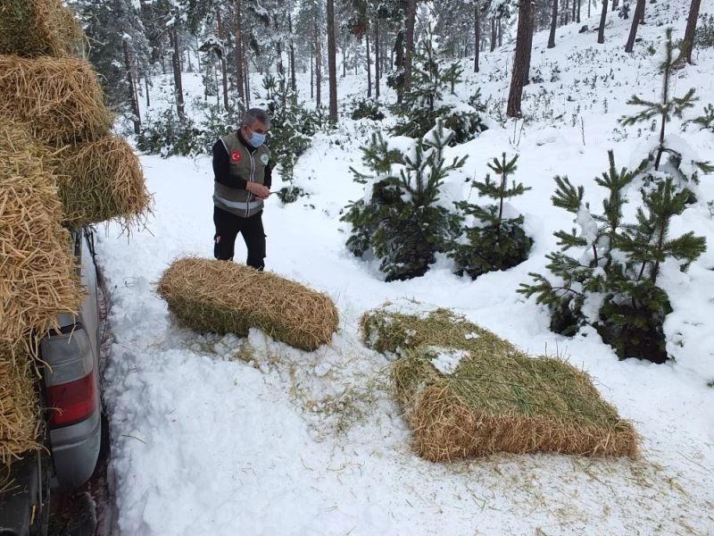 Orman ve Su İşleri Bakanlığı Kütahya Doğa Koruma ve Milli Parklar Şube Müdürlüğü ekibi, kar yağışı sebebiyle aç kalma tehlikesiyle karşı karşıya olan yaban hayvanları için ormanlık alanlara yiyecek bıraktı.