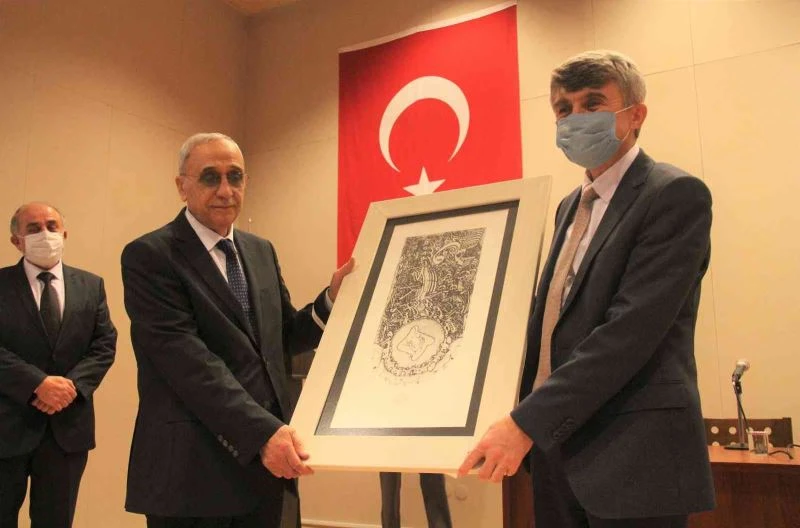 Rektör Kazım Uysal ve Prof. Dr. Rahmi Kasımoğulları, törene katılan Prof. Dr. Mustafa Çetin Varlık ve Prof. Dr. Mehmet Tayfun Amman’a günün anısına hediyelerini sundu.