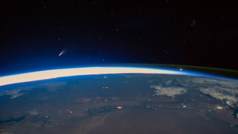 Uluslararası Uzay İstasyonu (ISS) tarafından görüntülenen C/2020 F3 Neowise isimli kuyruklu yıldızın görüntüsü izleyenleri kendine hayran bırakıyor. Güneş doğmadan önce gözükebilen kuyruklu yıldız bugün Dünya’nın 103 milyon km yakınından geçti.