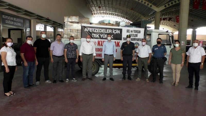 Aydın’ın Kuyucak ilçesinde İlçe Kaymakamlığı ve İlçe Belediyesinin öncülüğünde düzenlenen yardım kapmayasında toplanan yardımlar sel bölgelerine dualarla uğurlandı.