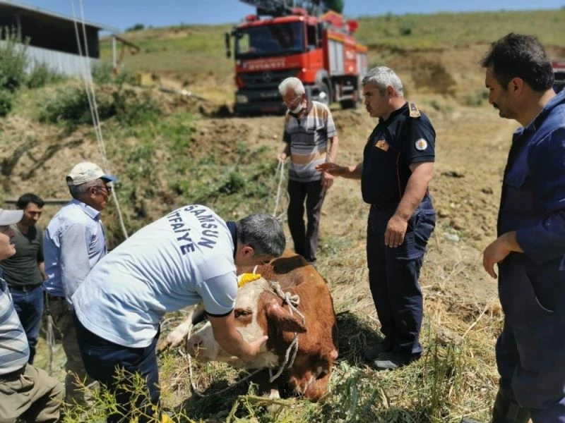 Samsun’un Havza ilçesinde kuyuya düşen büyükbaş hayvan, itfaiye ekipleri tarafından kurtarıldı.
