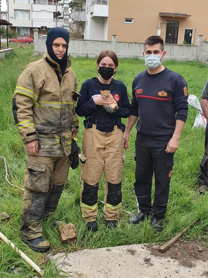 İzmir’in Aliağa ilçesinde 3 metre derinlikteki kuyuya düşen kedi yavrusunu itfaiye ekipleri kurtardı.