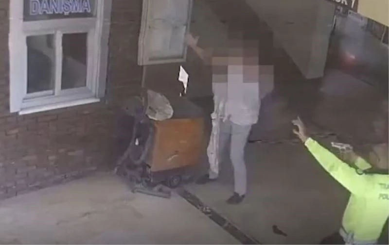 Gaziantep’te iş yerini basan kuzenini silahla öldürdüğü iddia edilen katil zanlısı kadın doğum uzmanı Bekir Çelik’in olaydan sonra trafik polisine teslim olduğu anlara ait görüntüler ortaya çıktı. Görüntülerde, olaydan hemen sonra silahını yere bırakan katil zanlısının, ellerini havaya kaldırarak trafik polisine teslim olma anları yer aldı.