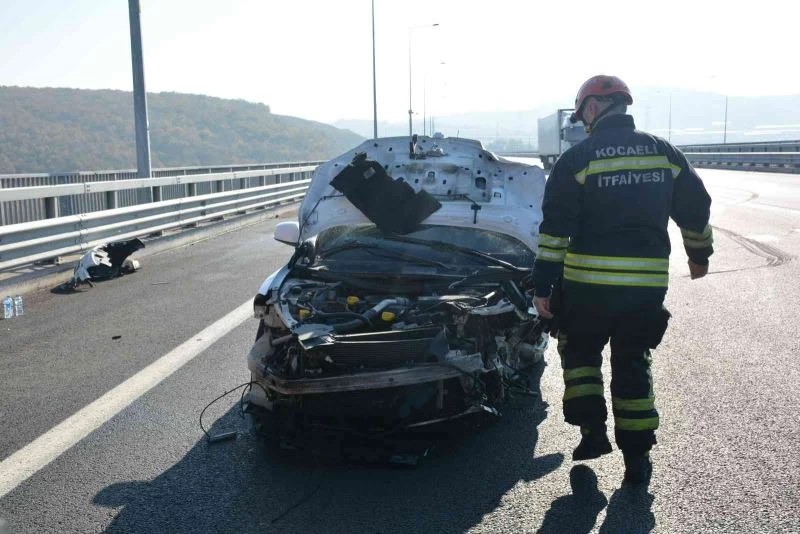 Kuzey Marmara Otoyolu Kocaeli geçişinde sürücüsünün direksiyon hakimiyetini kaybettiği otomobil bariyerlere çarparak sürüklendi. Kazada 3 kişi yaralanırken, sürüklenen otomobilden savrulan parçalar ise seyir halindeki başka bir otomobile isabet etti.
