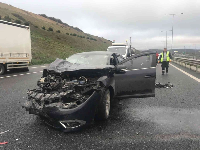 Kuzey Marmara Otoyolunda sürücüsünün kontrolünü kaybettiği otomobil, önce hafif ticari araca arkadan çarptı. Hafif ticari bariyerlere çarparak durabildi. Kazada 2 kişi yaralanırken, Jandarma ekipleri kazayla ilgili inceleme başlattı.
