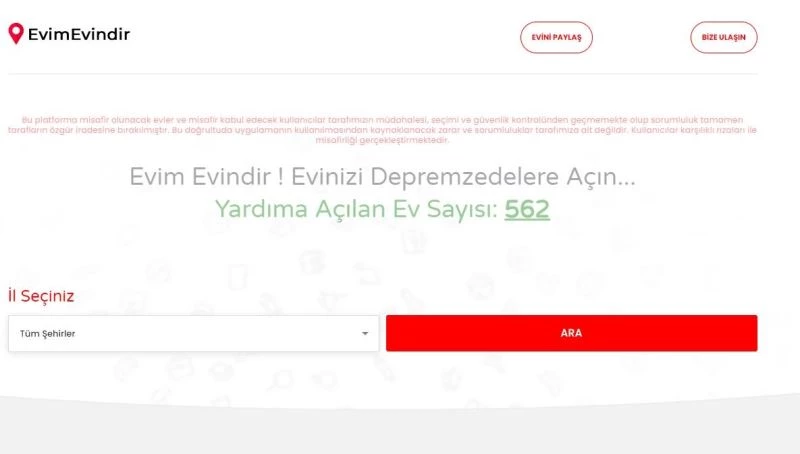 Avukat Enes Malik Saran da, "Genç arkadaşlarla birlikte bağımsız bir afet koordinasyon merkezi kurduk. Bir çok konuda faaliyet yürüttük bunlardan birisi de evim evindir projesi, amacımız barınma krizini aşmak. Amacımız çadırlarda hatta sokaklarda konaklayan vatandaşları, ülkenin dört bir yanında evlerinde misafir etmek isteyen ev sahipleri ile aralarında bağlantı kurmak. Deprem sadece 10 ilimizi değil 81 ilimizi etkilemiştir. Arkadaşlarımız gönüllü olarak hiçbir menfaat beklemeksizin bu çalışmalar katkı sunuyorlar" diye konuştu.