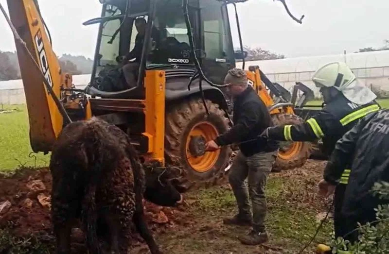 Seydikemer ilçesinde lağım çukuruna düşen büyükbaş hayvan itfaiye ekiplerinin müdahalesi ile kurtarıldı.