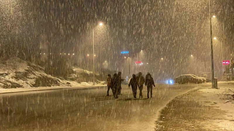 Düzce’de akşam saatlerinde kar yağışı etkili olmaya başladı. Lapa lapa kar yağışını gören sokağa çıktı.