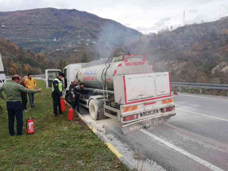 Lastiği alev alan tankeri yanmaktan jandarma ekipleri kurtardı