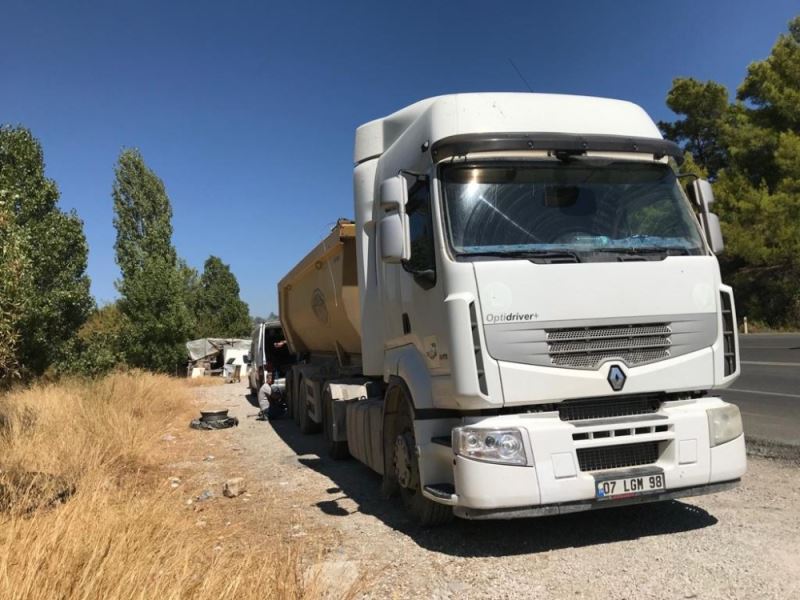 Antalya’da seyir halindeki kamyonun tekeri patladı, yanmaya başlayan tekerden kopan parçalar orman yangınına neden oldu. Yangında 0.3 hektarlık ormanlık alan kül oldu.