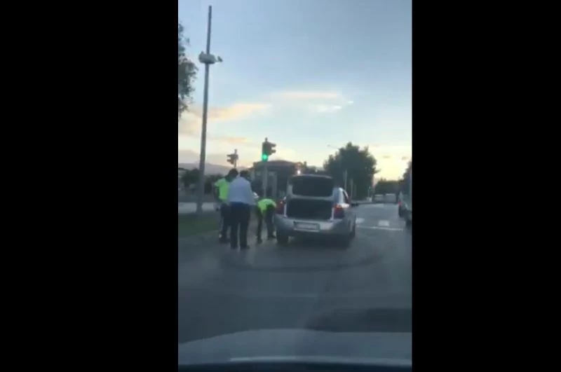 Aracın lastiğini polisler değiştirirken sürücü gördüğü yardımdan dolayı Emniyet teşkilatına teşekkür etti.