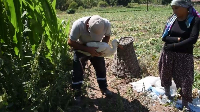 Balıkesir’in Sındırgı ilçesinde göç eden leyleklerin zarar görmemesi için tedbirler devam ediyor. Tarlada yaralı olarak bulunan leylek, belediye tarafından Milli Parklar Müdürlüğüne teslim edildi.