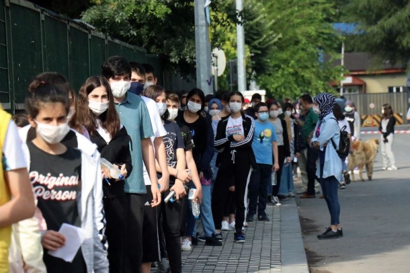 Dünyada ulusal pandemi olarak ilan edilen korona virüs tedbirlerince Sakarya’da binlerce öğrenci bir ilki yaşayarak salgın tedbirleri kapsamında sınava alındı. Öğrenciler, kimlik kontrolleri ve salonlara yerleştirmenin zamanında yapılabilmesi amacıyla sabah saatlerinden itibaren sınava girecekleri binalara geldi. Bu yıl öğrenciler sınava öğrenim gördükleri okullarda girerken korona virüs tedbirleri kapsamında sosyal mesafeyi sağlayabilmek için okullarda güvenli alanlar oluşturuldu. Öğrencilerin sınava girecekleri sınav merkezleri ve sınıflar dezenfekte edilerek hijyen sağlandı. Sınav salonlarına girecek öğrenciler görevlilerin talimatları doğrultusunda okula girerken, maske değişimi ve el dezenfektanı kullanarak sınıflara geçişleri sağlandı. Sınava girecek öğrencilerin sağlığı açısından velilerin okul bahçesine alınmasına izin verilmedi. Öğrencileri için alınan tedbirler doğrultusunda her sınavda olduğu gibi yoğunluğun olduğu okul çevrelerinde görevliler sosyal mesafe konusunda velileri uyardı. Sınava giren öğrenciler salonlarda ter dökerken, veliler ise dışarıda çocuklarının başarılı olmaları için Kur’an-ı Kerim okudu ve dua etti.